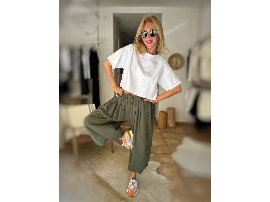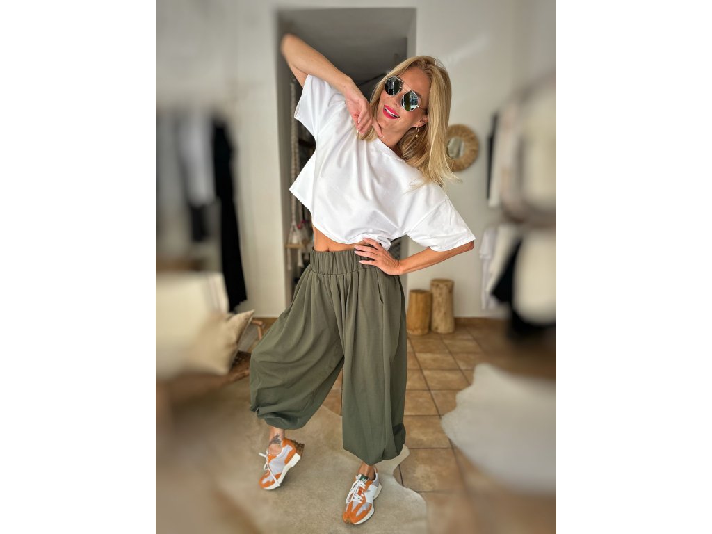 Turecké kalhoty alias harémky – střih pohodlný jako nedělní ráno, z luxusního Punto Milano matroše který zvládne jaro, léto, podzim i „zimu v kanceláři“. Mají vysokou, měkkou gumu, co umí schovat bříško, a nosit je můžete do pasu nebo na boky – podle nálady i kafe v krvi.😂