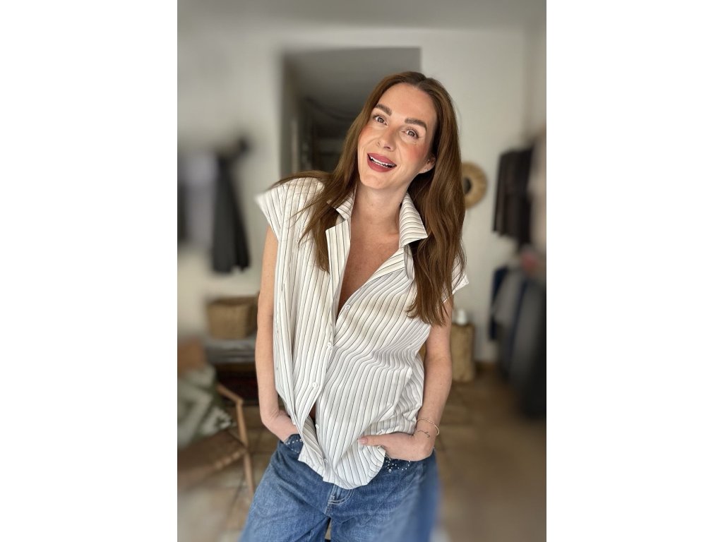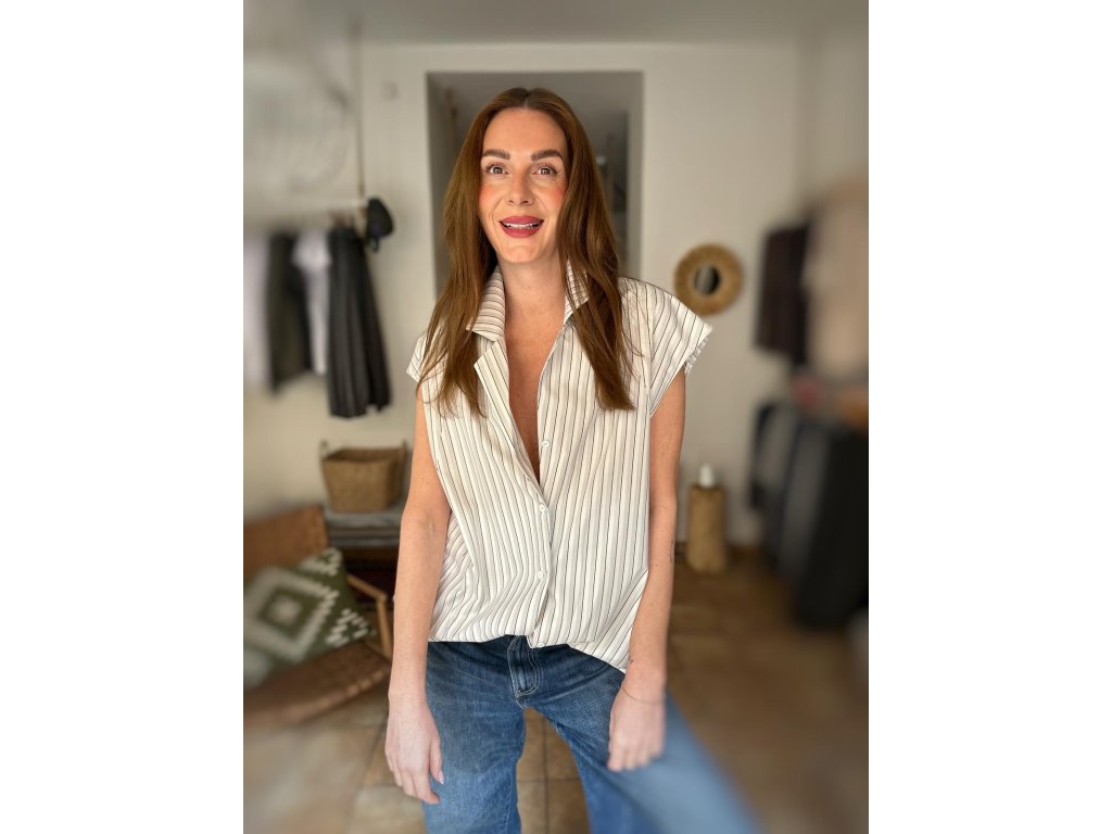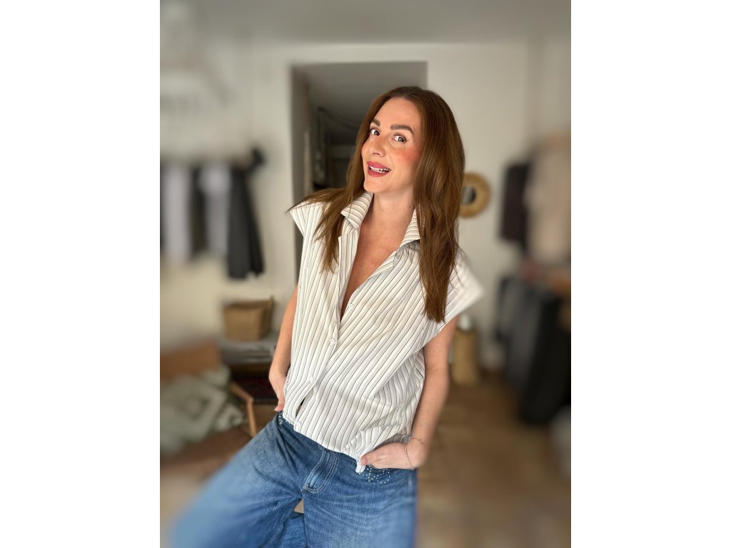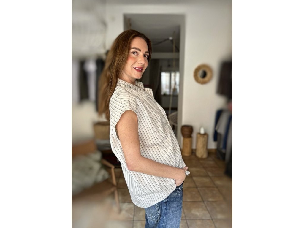 Úplně nový střih, krásný výstřih, jemný límeček a krátký rukávek, který je tak akorát – lehký na léto, ale stále elegantní pro všechny, které chtějí mít ramena decentně zahalená. Bílá s jemným proužkem, takže funguje úplně na všechno: k turečákům, pod sako na schůzku, nebo klidně k roztrhaným džínám na colu u hřiště!