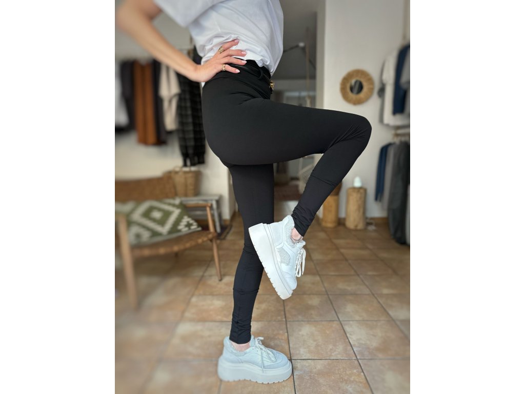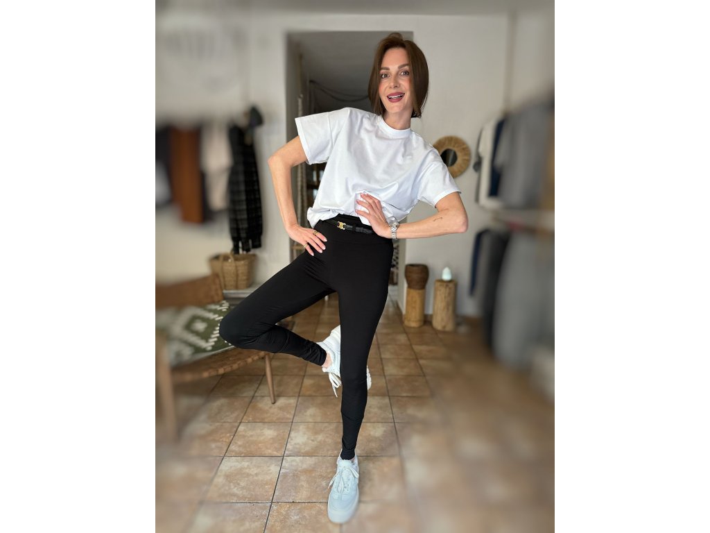 A teď ten detail, kvůli kterému se z legín stává outfit: poutka na pásek! Kožený. Černý. Zlatý. Se sponou. Bez spony. Najednou z nich nejsou „legíny na venčení dětí“, ale legoše k saku, do práce, na schůzku, večer na víno. Tyhle legíny se prostě nestyděj!