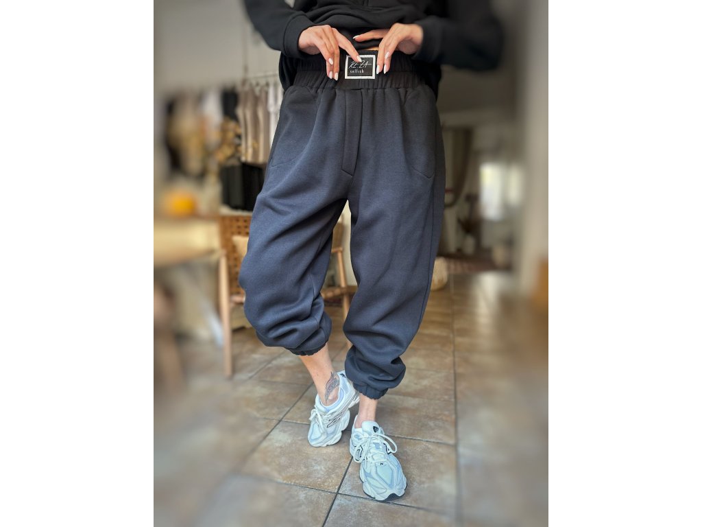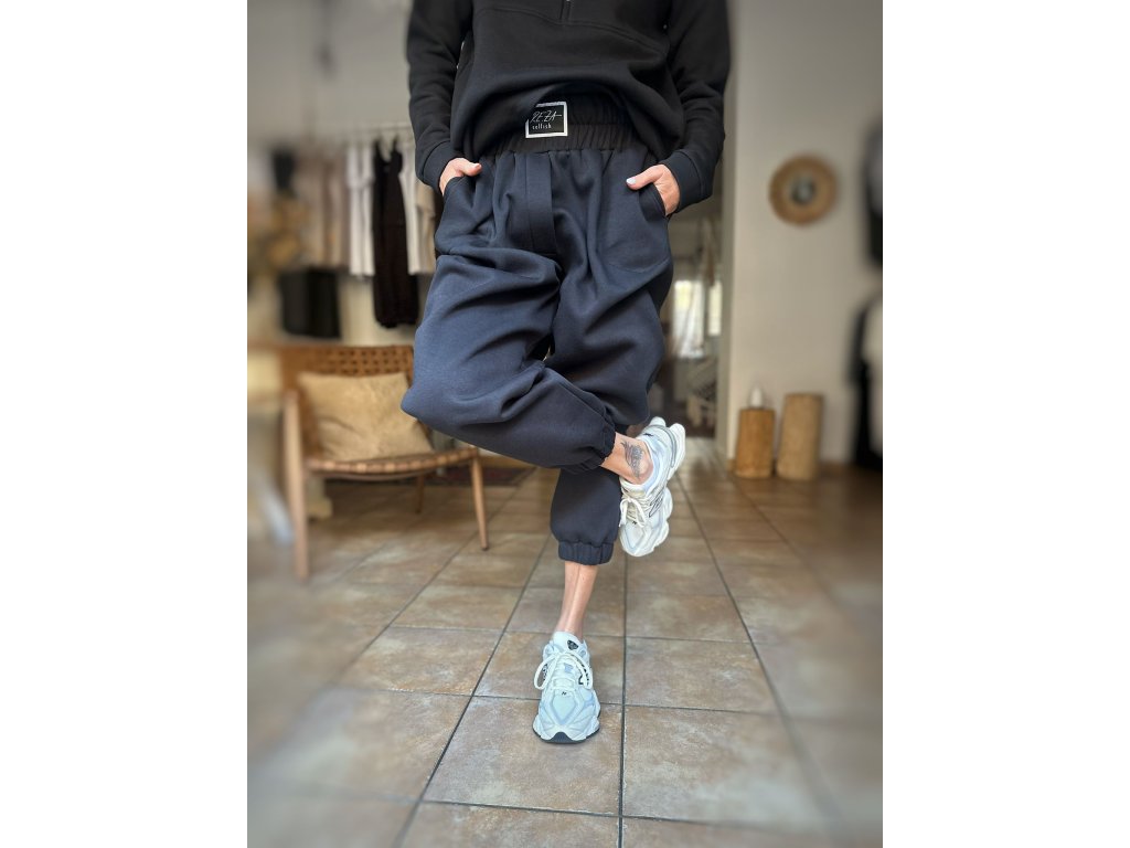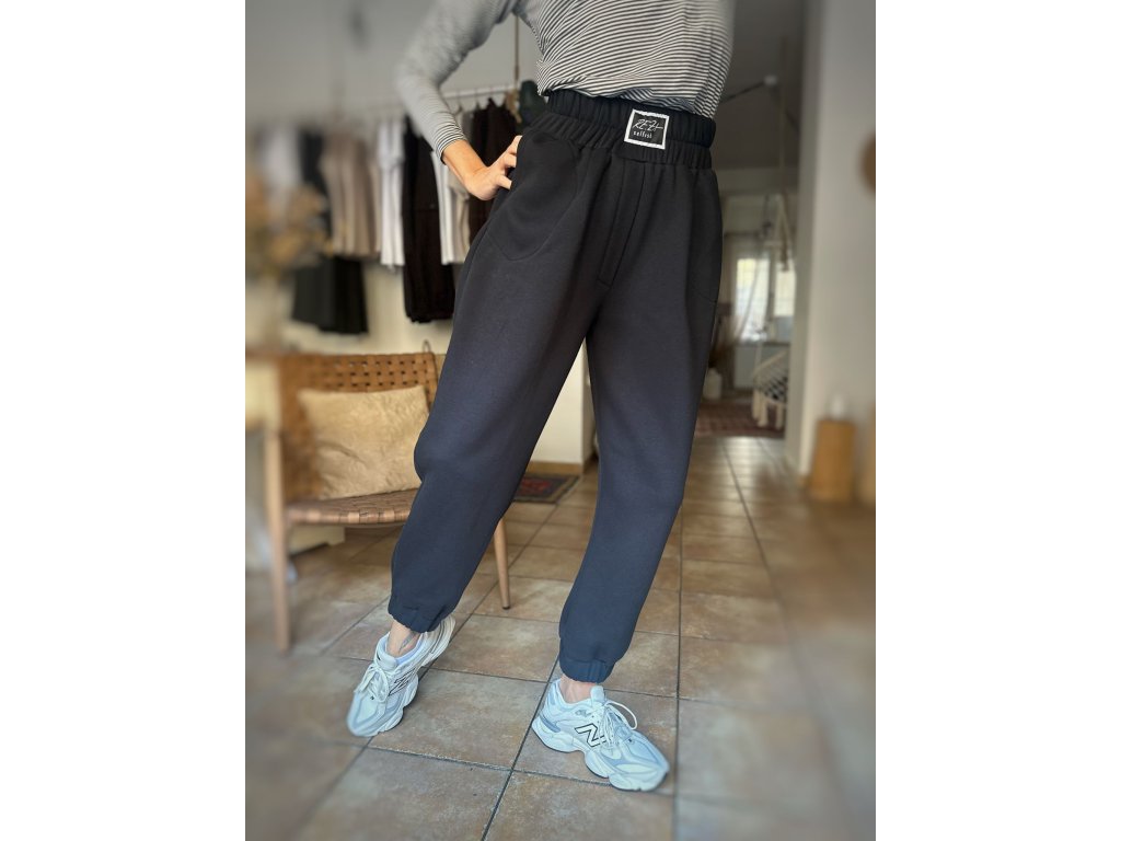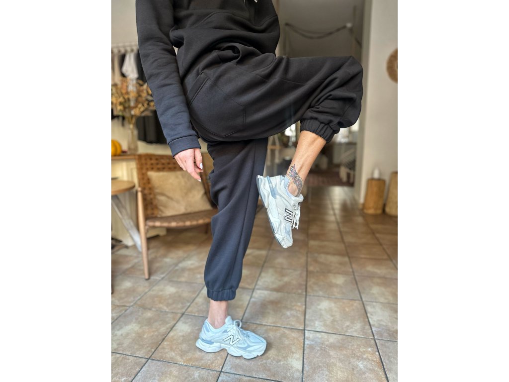 Černé tepláky, které mají naši nejširší gumu ever – krásně podrží, vytvarují postavu a sedí přesně tam, kde chcete. Klidně do pasu, protože lichotí i křivkám, které máme rády v reálné velikosti.. A kdo má náladu na ležérnější look, může je klidně nosit níž, k širšímu triku nebo třeba ke kašmírovému svetru, jako já.