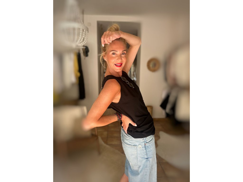 Černé tílko v novém, lehce zúženém a zkráceném střihu, které utaháte po celý rok. V létě k čemukoliv, v zimě třeba pod mikču či svetr.