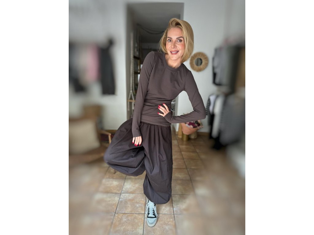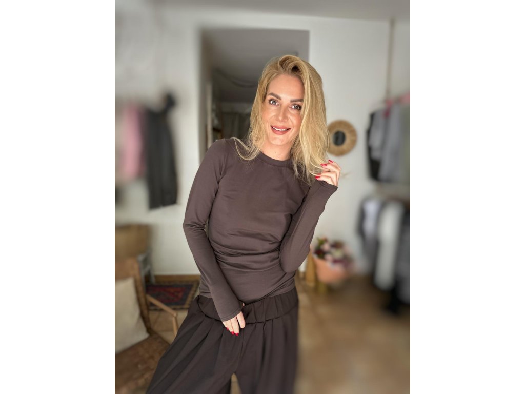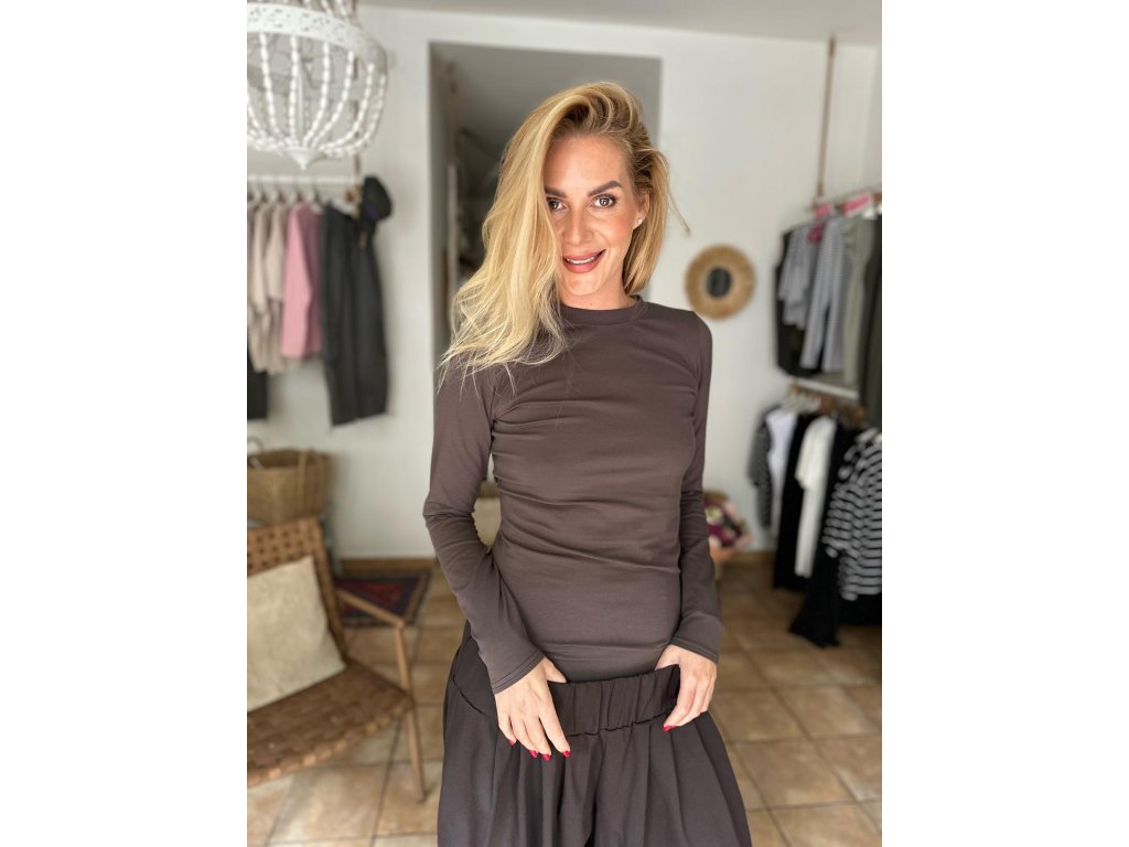 Upnutý dlouhý rukáv s kulatým výstřihem (protože klasika má taky své kouzlo).