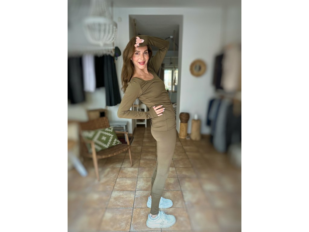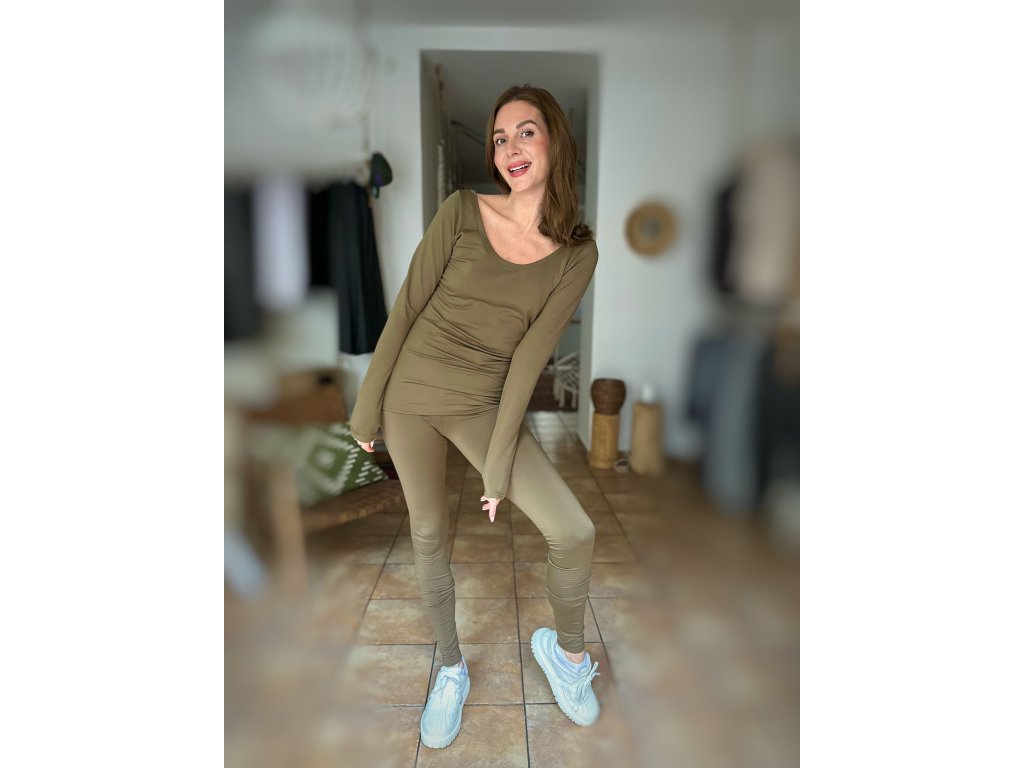 Přiléhavý střih, zkrácená délka 70 cm, rovný spodní lem, pruží.