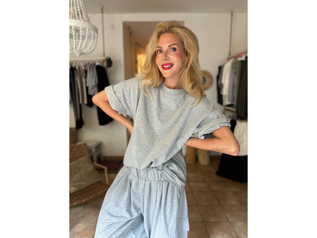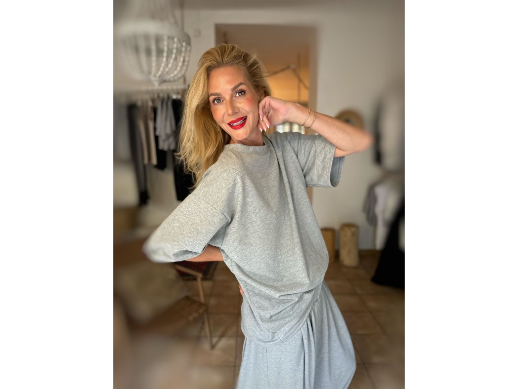 Protože kalhoty si zaslouží parťáka, ušili jsme vám k nim boyfriendové triko ze stejného materiálu. V podstatě mikina, ale s jemností, která vás nechá vrstvit, jak je libo – třeba s džínovou košilí, nebo pod něj klidně přidejte dlouhý rukáv.