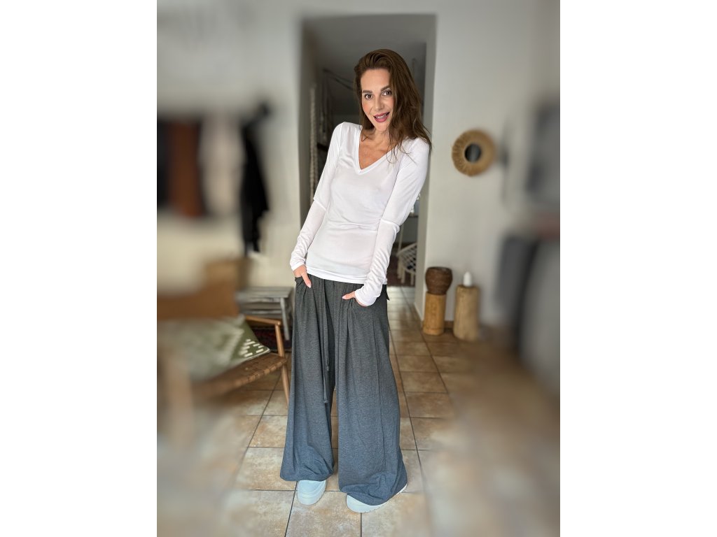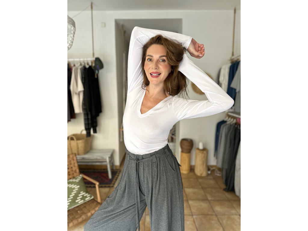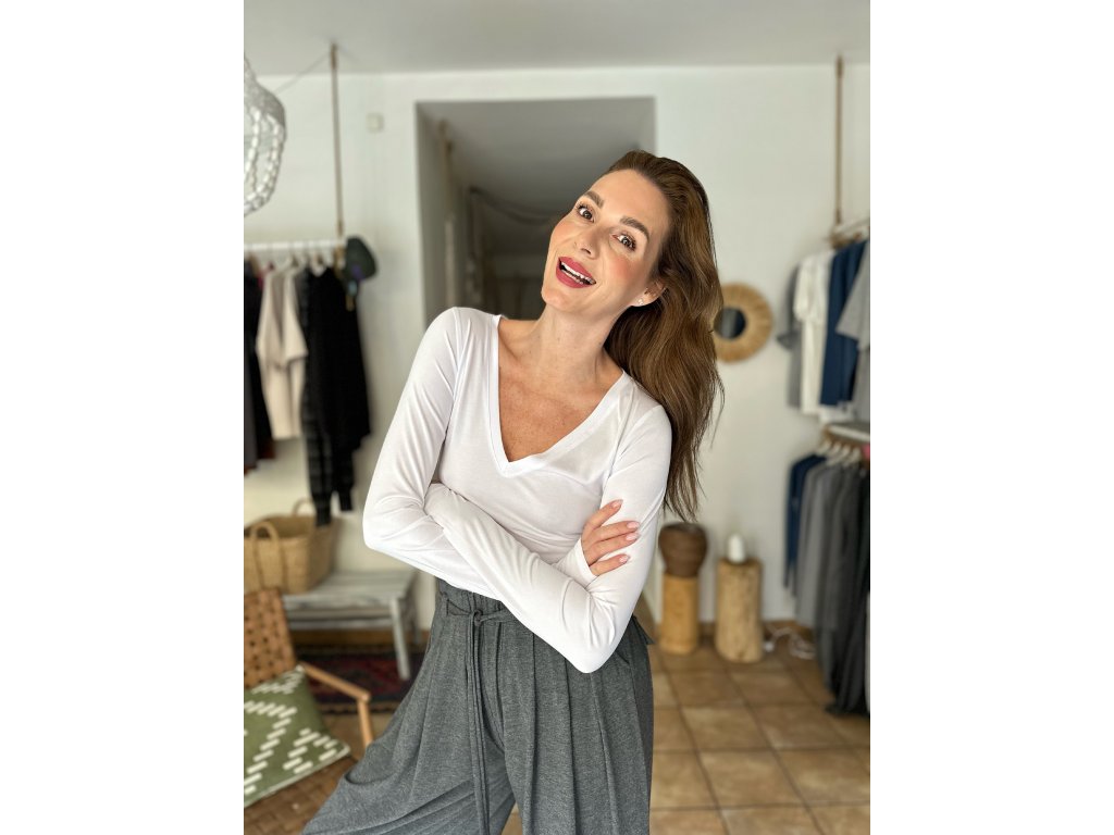 Naše bílé upnuté triko z úplně nového materiálu s výstřihem do V!