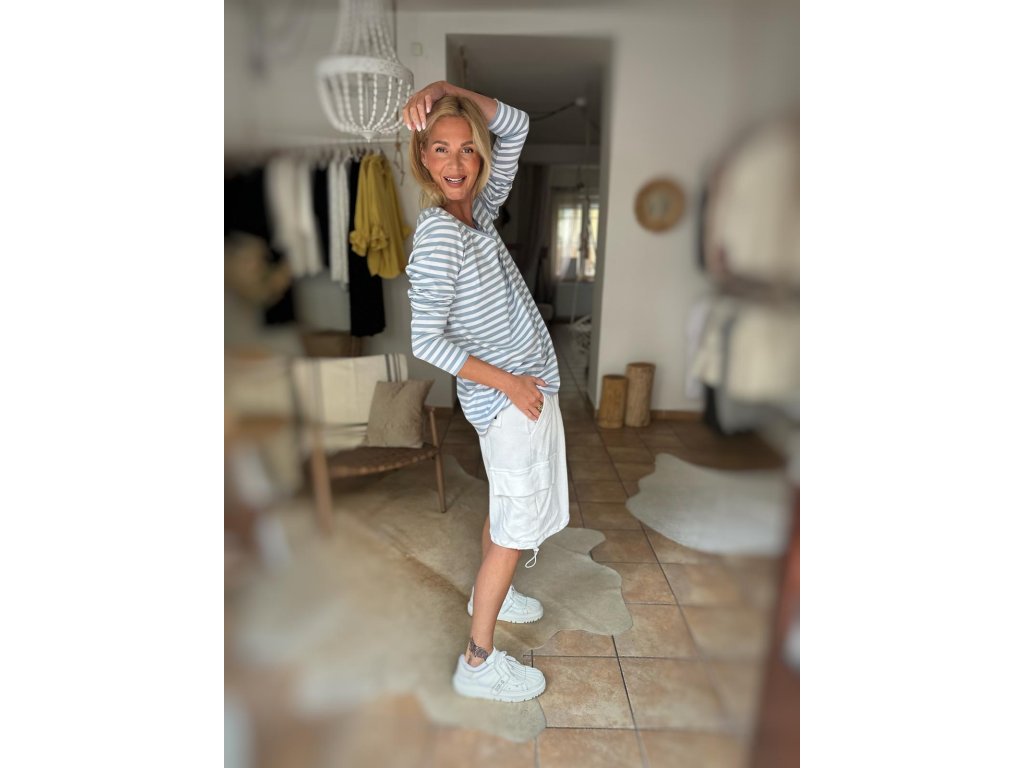 Střih KLASIK, zkrácená délka 70 cm, rovný spodní lem.