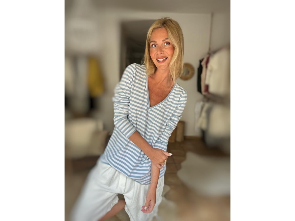 Minimalistické tričko do V z kvalitní bavlny – čistý basic, který tě nikdy nezradí.